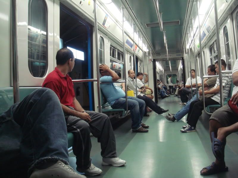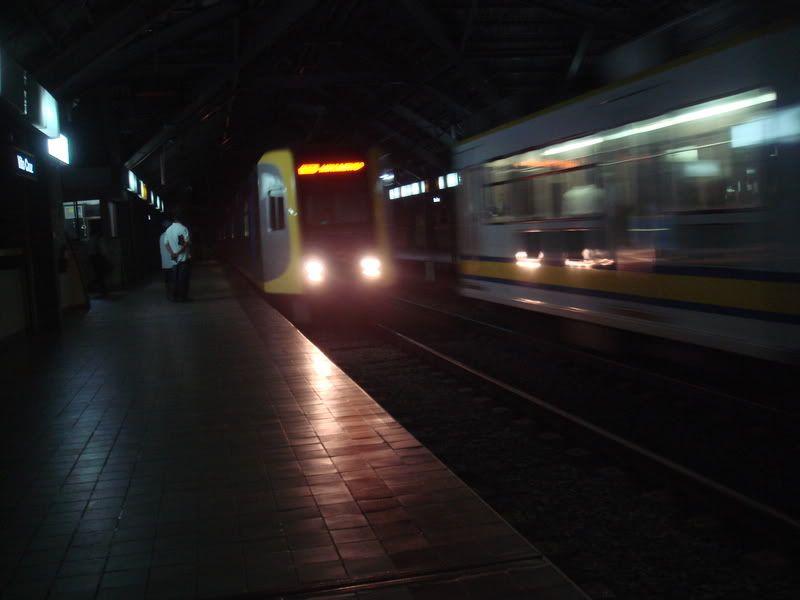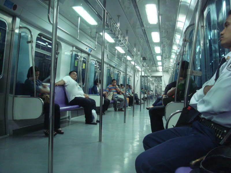 i thought of riding the train to get to the bus station from taft to cubao. it was 5 in the morning, walking alone. i was able to take pics. i really don't know if it's allowed or not. guards were everywhere. of course, i am responsible enough not to use flash. i might cause a riot (but that would be fun, don't you think?). people were all sleepy except me coz' i was busy hiding my camera from the guards.