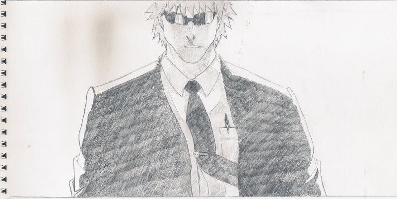 i couldn’t draw without looking at something. i got this from bleach’s ichigo (matrix reloaded mode) but my officemate says he looks more like a man in black. i bet he’s a will smith fan.